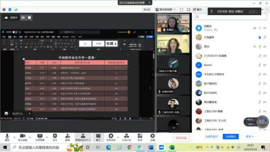 副院长蒋琰、中加班班主任文婷、外事秘书喻洁、辅导员张鹏岩出席本次会议,出国生代表、全体20、21级工商管理(环境商务)专业学生及家长参加了本次会议。会议由张鹏岩老师主持。