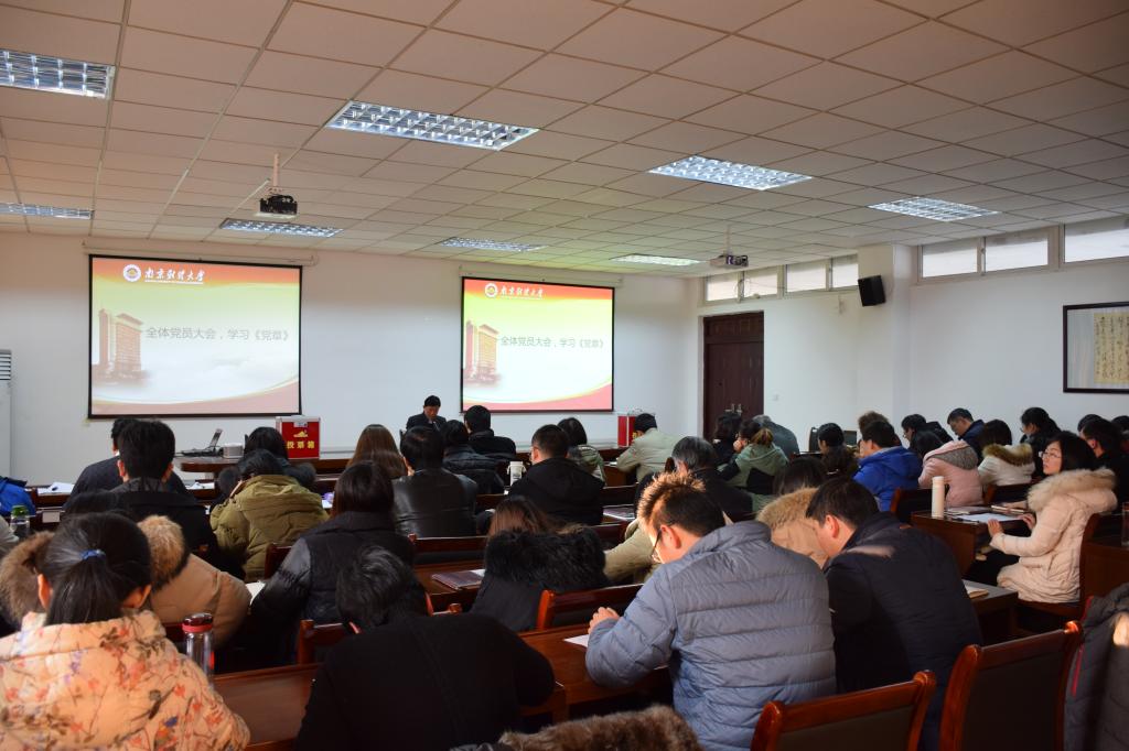 在仙林校区德济楼408会议室召开党员大会,开展以“重温新党章,感知新力量”为主题的“两学一做”学习教育。全体党员院领导、支部书记及全体师生党员60多人参加大会。大会由磁力链