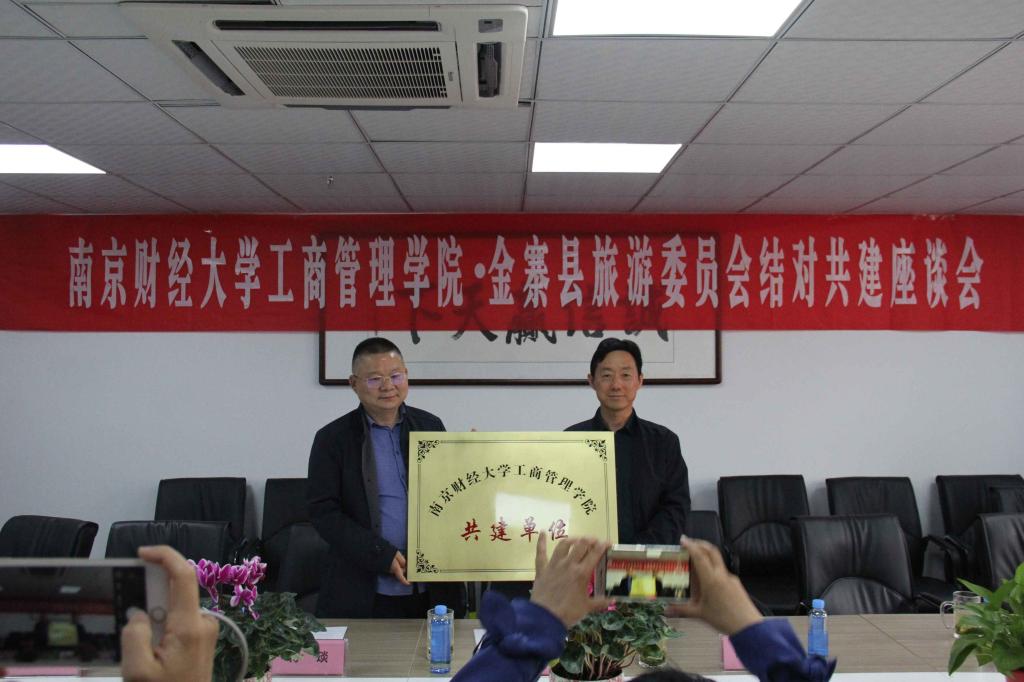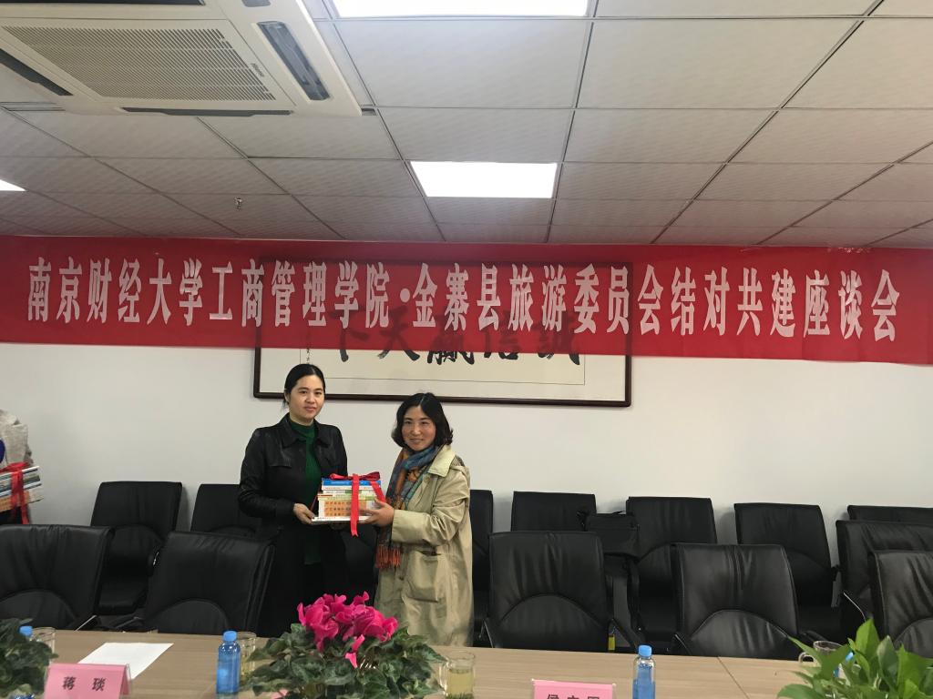 的基本情况及今后帮扶活动的计划,并与洪潮主任共同为共建单位揭牌,蒋琰副院长向对方赠送了旅游方面的书籍,侯立军教授对金寨县乡村振兴发展提出了宝贵意见。