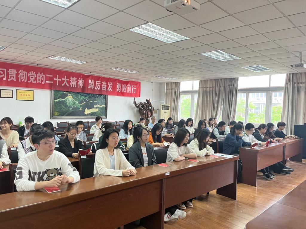 党委书记张杰,党委副书记尹海燕,学工办主任、研究生党支部副书记邱祥霞,研究生党支部书记张萌、本科生第一党支部书记常莹、本科生第二党支部书记赵菲以及来自磁力链