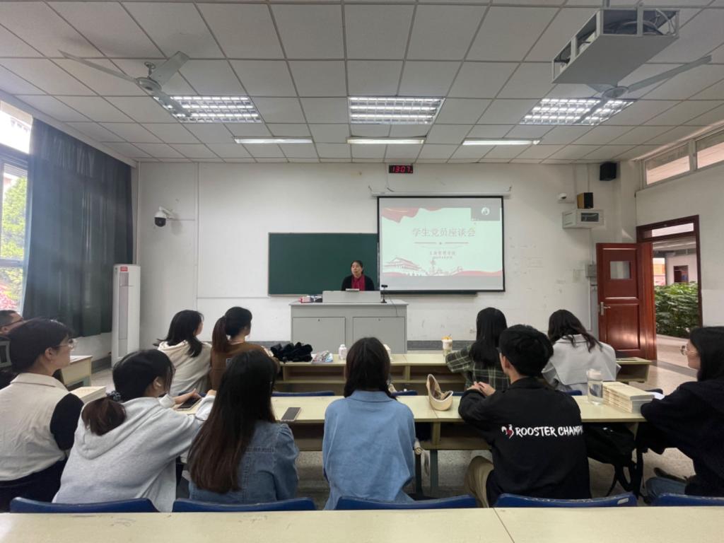 本科生第二党支部在仙林校区德济楼108教室召开学生党员座谈会。会议由党支部书记赵菲主持,学院党委书记张杰、组织员赵雪,以及全体学生党员同学参加座谈。
