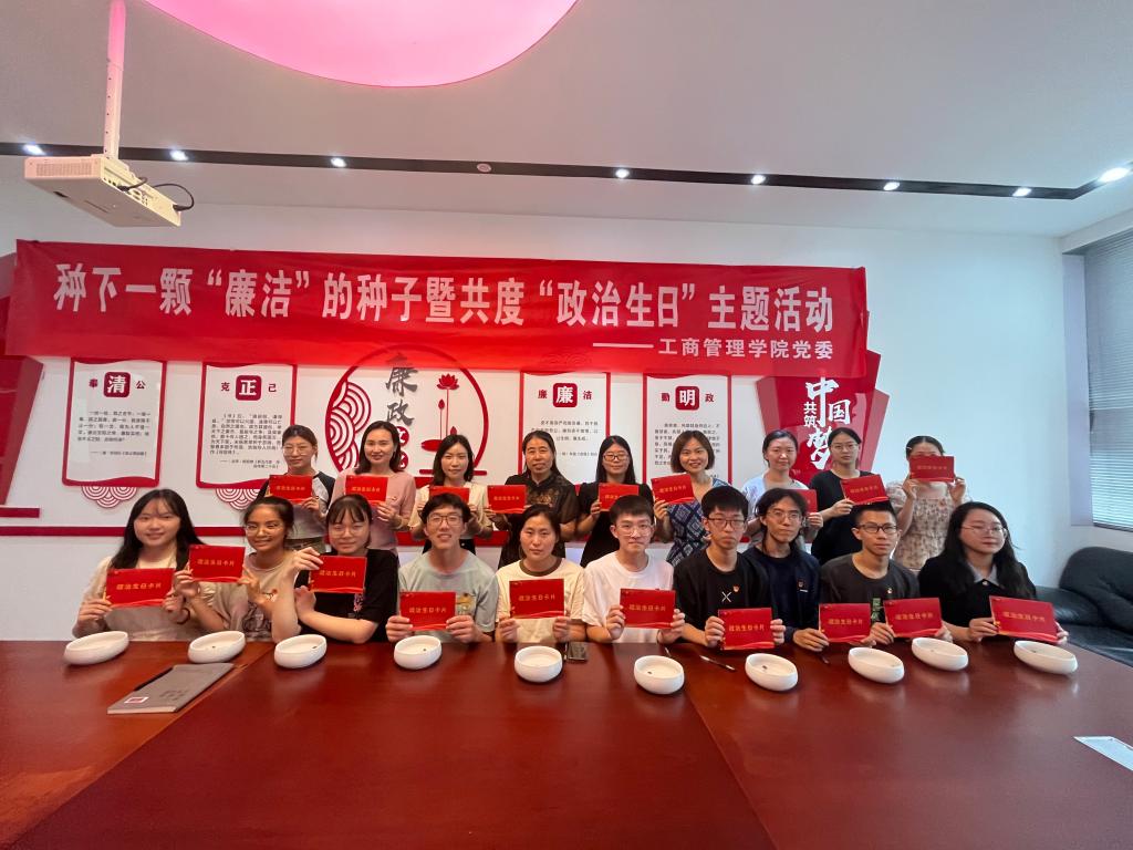 本次活动在庄严隆重的国歌声中拉开了的帷幕,师生们通过观看廉洁文化微电影《一念半生》感受清正廉洁的价值理念。随后,党委书记张杰老师与学生党员代表们一同播下“廉洁”的种子,让碗莲在纯洁的清水中发芽开花。通过实践活动引导同学们深入领悟廉洁的内涵,通过实景课堂加深同学们对廉洁教育的感悟。接下来党员们笔墨传情,创作了充满歌颂意味的“政治生日”卡片,互相交换,分享祝福,表达对伟大的党的敬仰和美好祝愿。