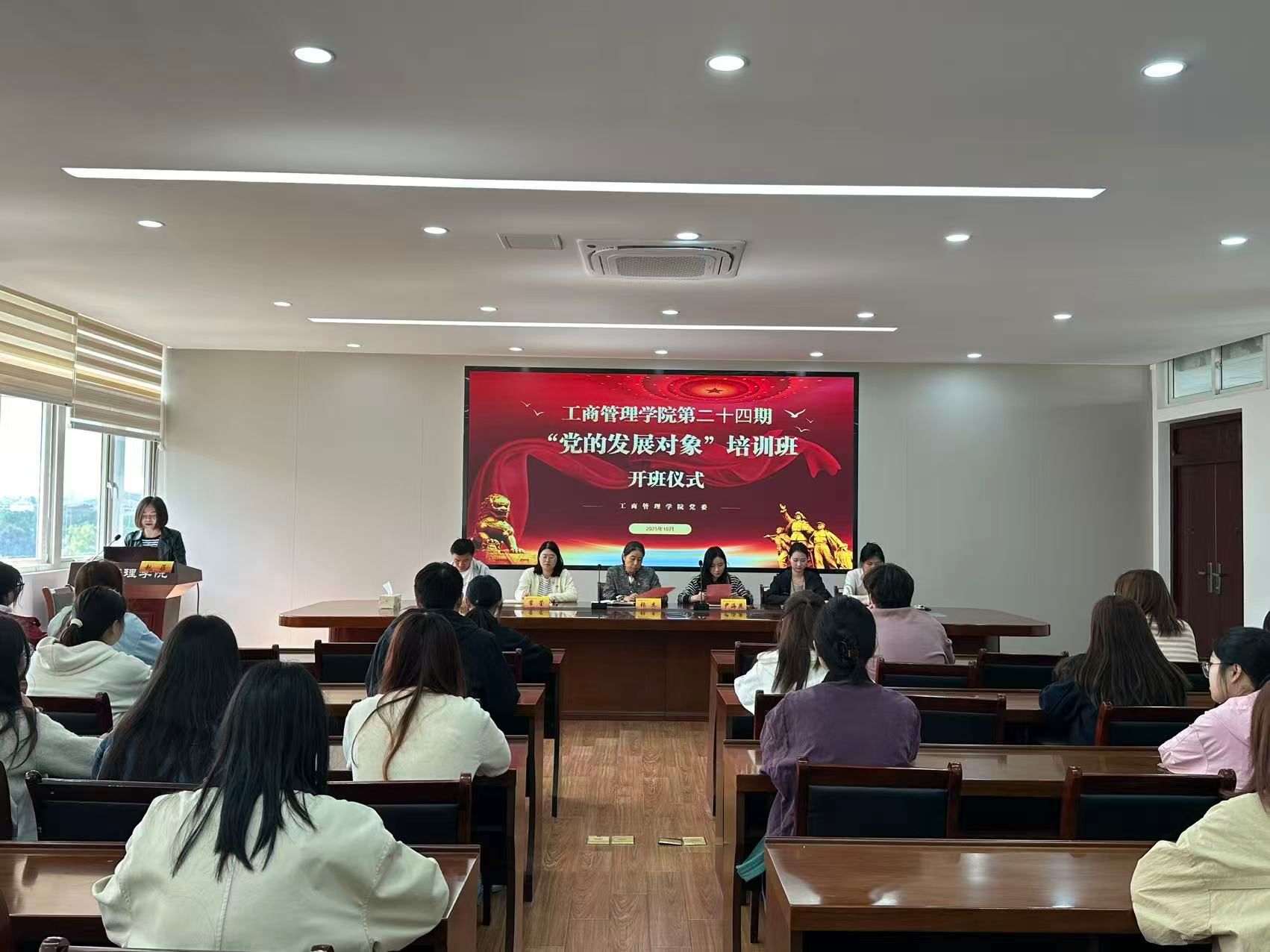 、管理科学与工程学院、粮食和物资学院等学院的37名党的发展对象参加了本次开班仪式。开班仪式由学院分党校培训班班主任赵菲主持。