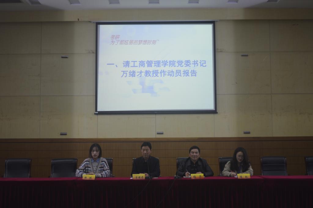 万绪才书记从三个部分作了“考研是通向美好未来之捷径”的主题主讲。首先,他从读研与否的区别及读研的优势、读研对于人生成长和能力提高的意义等方面阐明了考研的重要性。其次,万书记结合个人奋斗经历和从教经验,从“考研学校的选择、考研的专业选择、考研科目与阶段性学习、学习方法与技巧”等方面为学生如何考研提供了许多合理建议和科学指导,并强调了在当今学习型社会中终身学习的重要意义。最后,万书记表示学院会尽最大努力,为每一位考研学子提供力所能及的帮助,希望每一位工商学子都能把握考研机会,改变人生命运,在考研道路上苦干、实干加巧干,取得理想成绩,赢得美好未来。