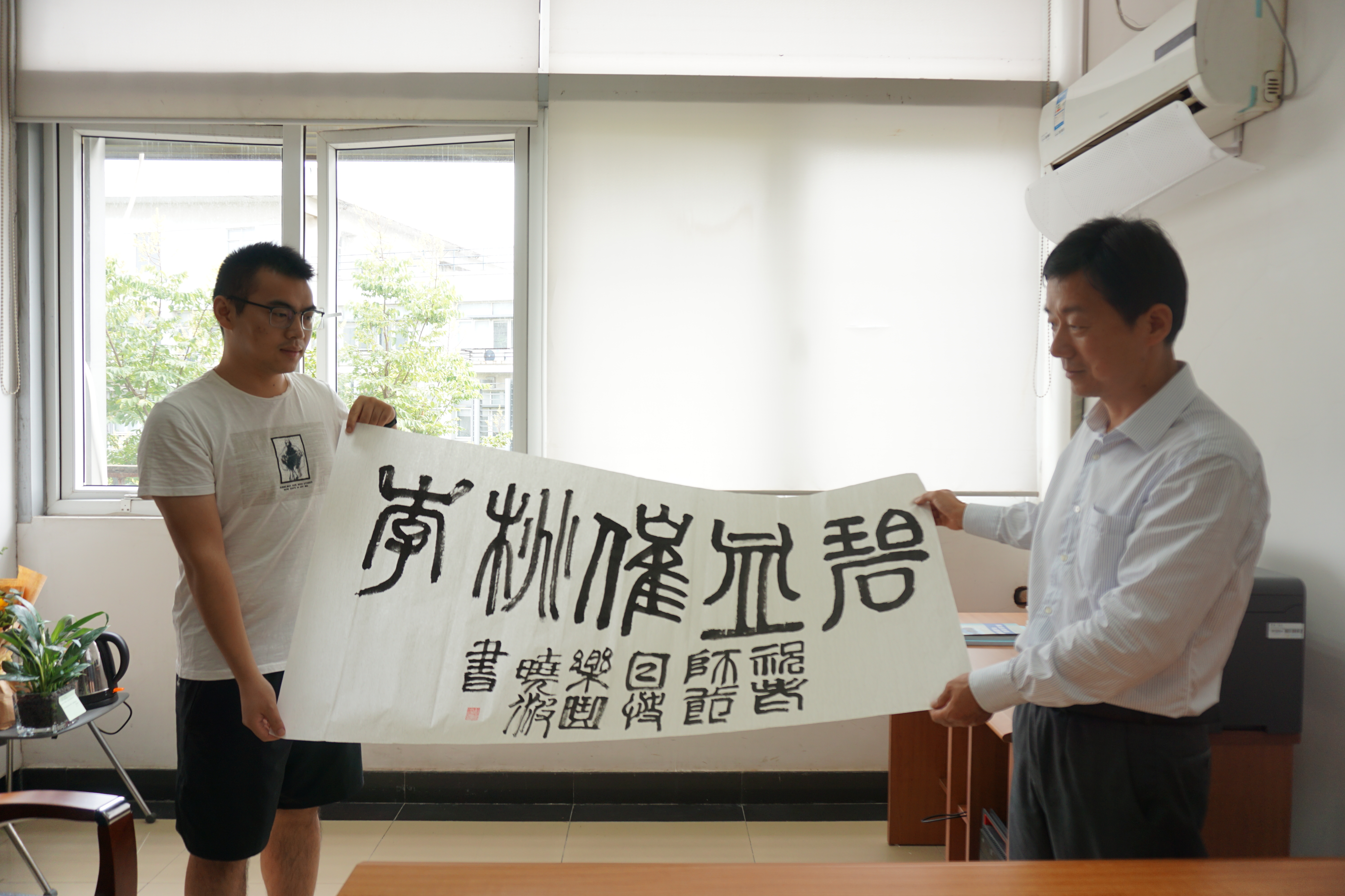 学生为辅导员冯玲老师赠送书法作品