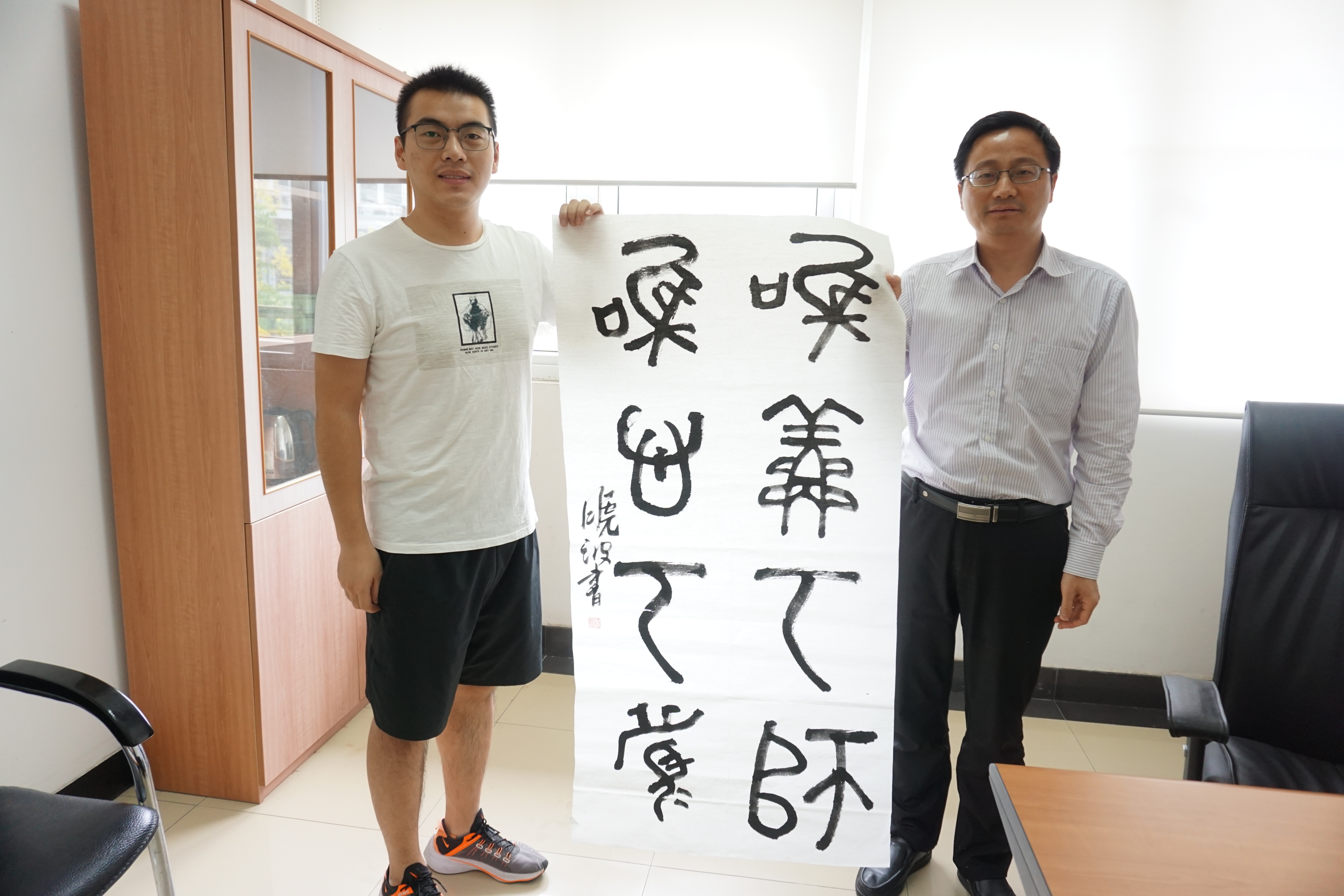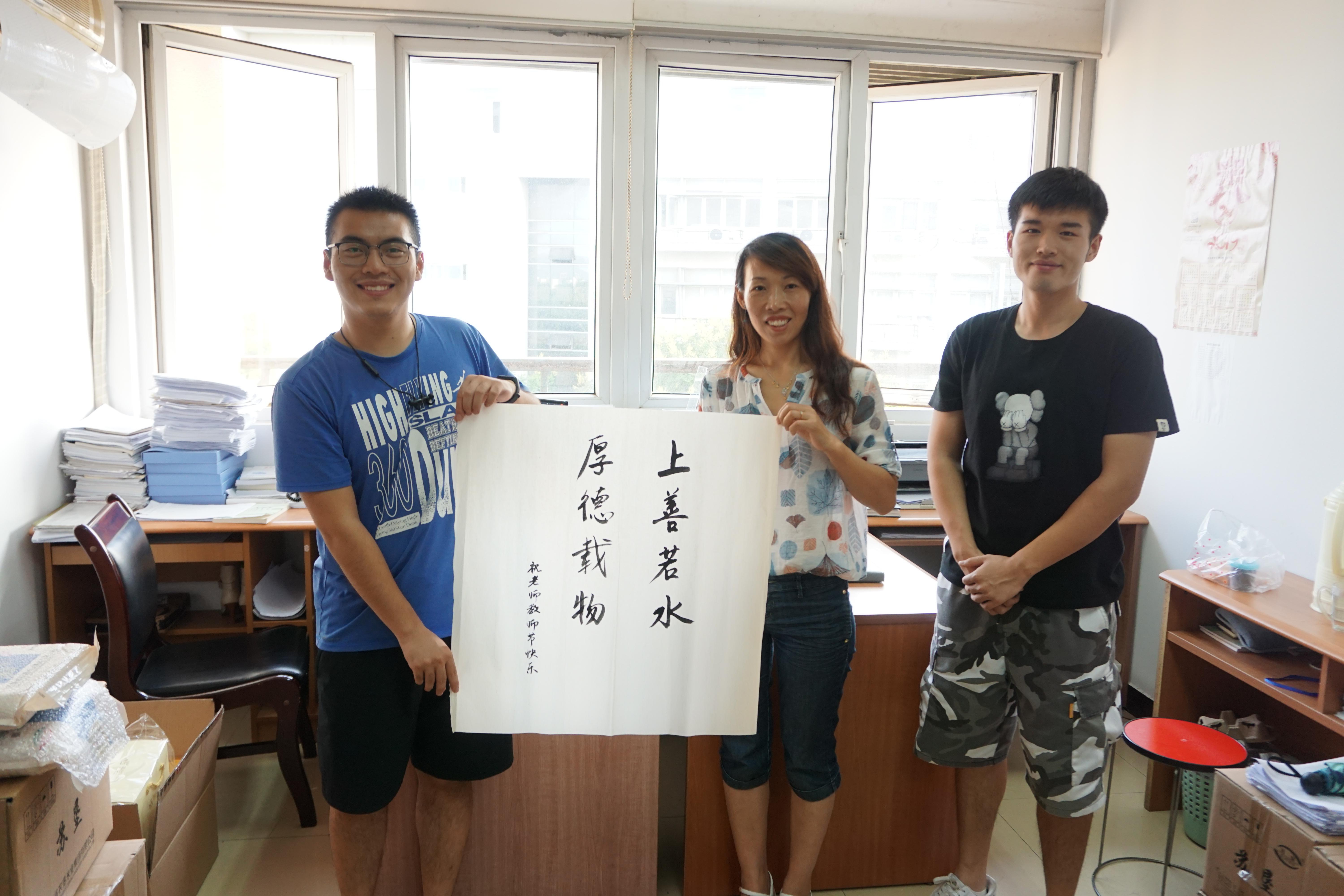 教师节当天上午,学院有书法特长的学生们为每位老师写了一幅书法作品,从“桃李不言,下自成蹊”、“上善若水,厚德载物”到“学而不厌,诲人不倦”,一笔一画,表达了对老师的深厚感情,将作品送到老师办公室后同学们与老师合影留念。收到同学们的“惊喜”后,老师的脸上都洋溢着感动与欣慰的笑容,并与同学们愉快地交流着。此外,磁力链