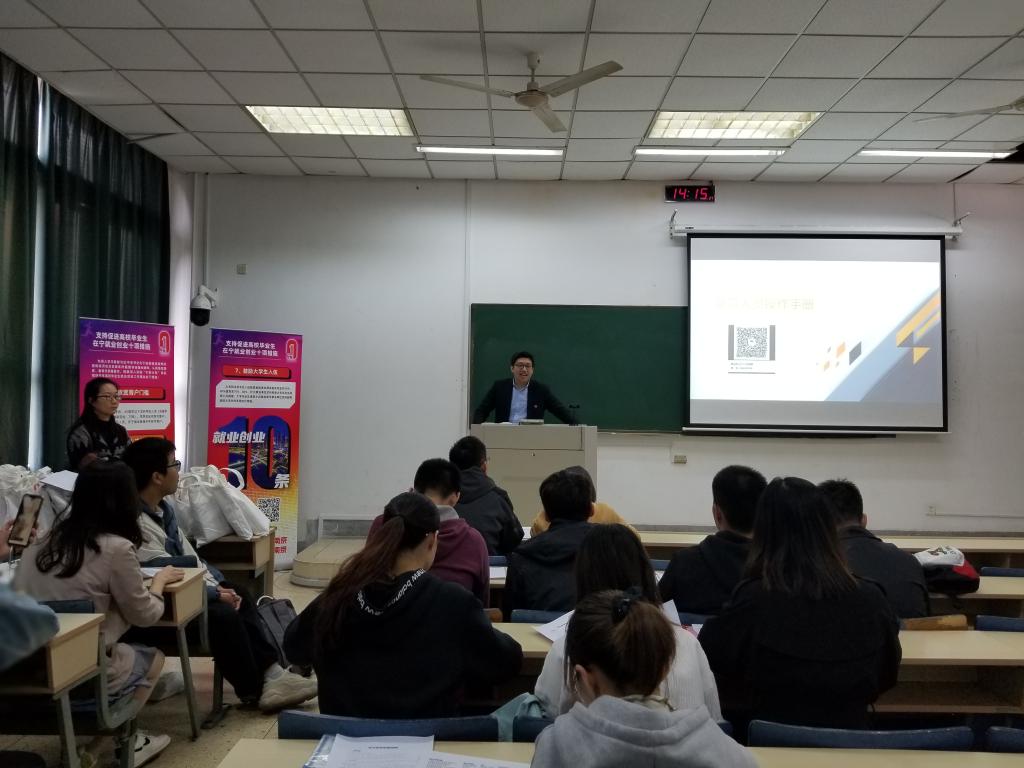 邀请南京市雨花台区创新服务局为学院2021届毕业生开展“宁聚计划——十万岗位邀‘宁’见习”政策宣讲会,学院2021届部分毕业生参加本次活动。