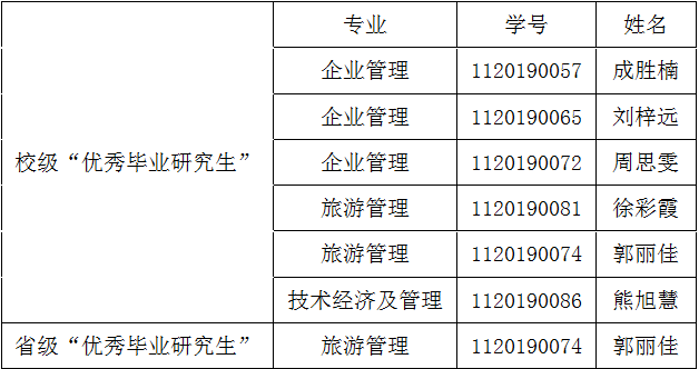 根据党委研究生工作部《关于开展2022年校、省级“优秀毕业研究生”评选工作的通知》,磁力链 研究生奖助评审工作领导小组对申请人进行了评议,决定推荐校级“优秀毕业研究生”候选人6人、省级“优秀毕业研究生”候选人1人,特此公示: