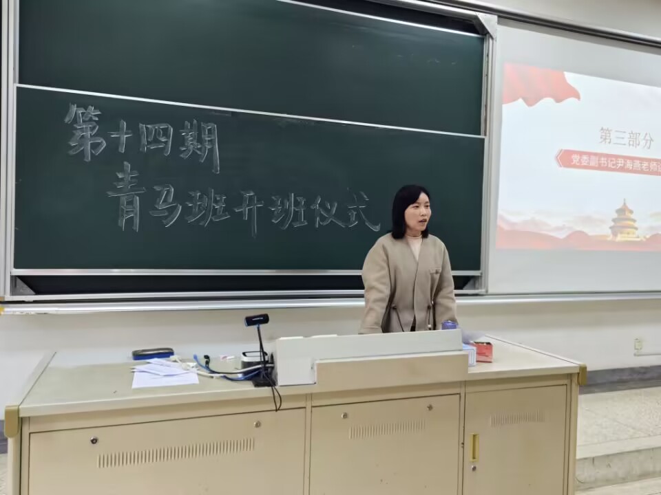 最后,院党委副书记尹海燕为十四期青马班作开班致辞。尹书记强调,青马班为大家提供了一个深入学习马克思主义的机会,希望同学们珍惜学习机会,圆满完成本次青马班的各项学习任务,同时对同学们提出三点要求:一是注重素质提升,在学思践悟中牢记初心使命,在知行合一中主动担当作为;二是注重实践,将青马班学习走深走实,行到深处,除了学习理论知识外也要积极参加竞赛、社会实践项目以及各类志愿服务,全方面提升专业知识和理论素养,圆满完成青马班学业任务;三是希望同学们不要辜负党和学校对青年的热切关怀和殷切希望,牢固树立紧跟党走的坚定信念,为实现中华民族伟大复兴奉献青春力量。最后尹书记祝愿所有学员都能通过青马班学业培训,在新的征程中学业进步,圆满结业。
