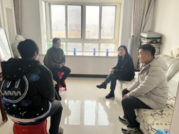 党委副书记尹海燕,学工办主任邱祥霞,组织员、分团委书记赵菲以及辅导员老师一行5人赴江苏南通对学院4位家庭经济困难学生进行了实地走访。