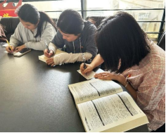 活动最后,毕业生们在明信片上留下了对学弟学妹们的祝福和寄语,希望同学们以书为伴,求真务实,在书海中徜徉,在视界里耕耘,让知识的火炬在校园里相传,彰显了“学无止境,知识共享”的理念。