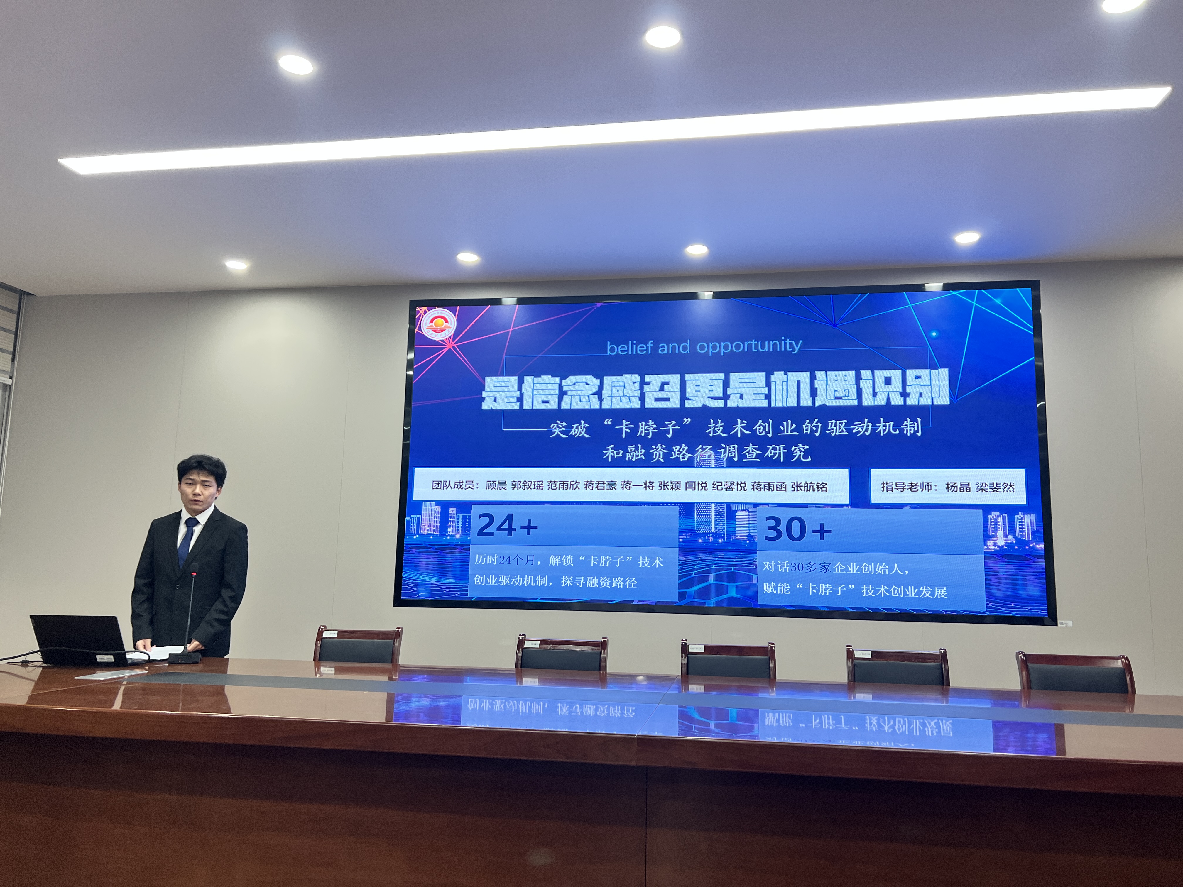 在项目指导环节,三个入围校赛的参赛团队分别围绕技术创业驱动、非遗数字化传承、大运河文化传播等前沿领域进行汇报。庄建军教授针对各组共性问题提出系统性优化建议:在选题设计上强调核心概念的精准界定与研究边界的合理聚焦;在学术规范方面要求强化数据支撑、注重研究方法的科学性与创新性;在实践价值维度建议凸显时代背景与现实意义,同时针对成果呈现提出PPT逻辑架构、数据权威来源、可视化表达等具体改进意见。