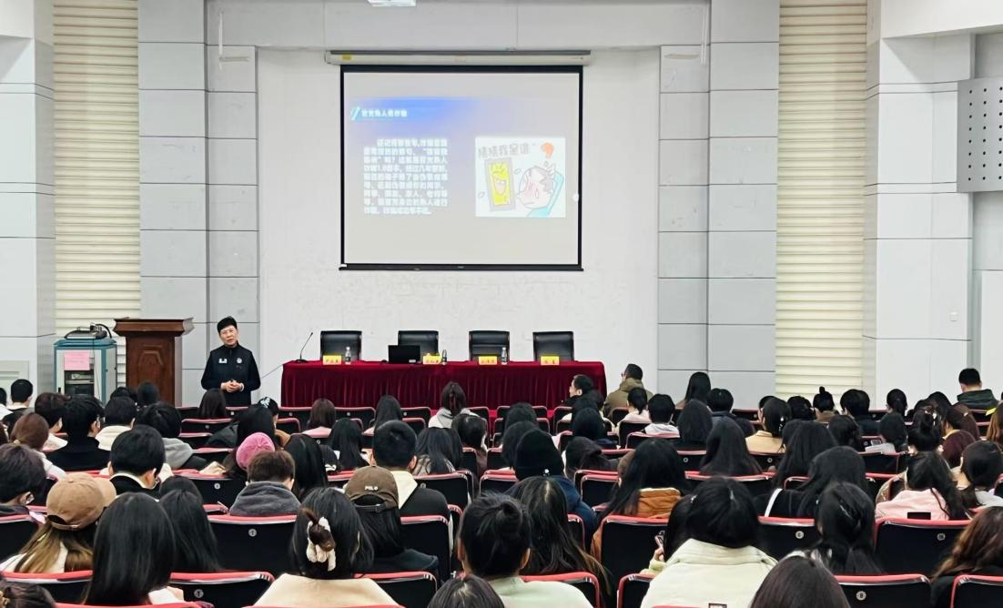 随后,陈红燕警官以自身“以十块钱挽救女子四十万”的真实反诈经历为切入点,系统梳理了“交友诱导投资”“情感洗脑操控”“熟人诈骗”等多种类型的常见诈骗套路,警示同学们防范电信诈骗。针对诈骗手段不断迭代翻新的现象,陈警官重点介绍了AI换脸、网络诈骗等新型技术骗局,凸显了当前诈骗形势的严峻性。除此之外,陈警官还详细讲解了一系列实用防骗技巧,现场演示国家反诈中心APP的安装与预警功能开启步骤,科普境外来电屏蔽、通话转移限制等实用防护策略,引导同学们从源头掐断诈骗。最后,陈警官针对受骗后的补救措施给出专业建议。学院党委副书记尹海燕表示,当前电信网络诈骗手段层出不穷,希望通过沉浸式的反诈宣传,帮助师生从认知层面建立“防诈免疫系统”,在复杂信息洪流中保持清醒判断,避免因轻信盲从陷入财产损失。