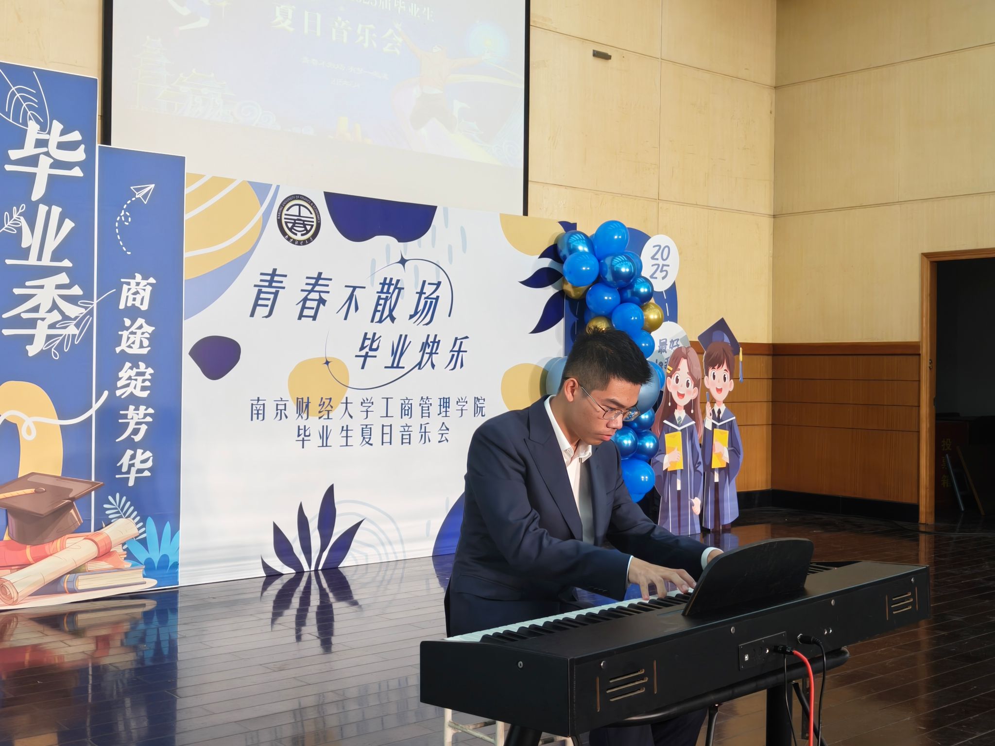 活动伊始,副书记尹海燕对2025届毕业生送出了诚挚的祝福,祝愿毕业生们在未来的人生道路上,一路坦途,前程似锦。随即,油画棒乐队以一首《寄往未来的信》点燃全场,青春的热血与梦想,在这充满活力的表演中,被诠释得淋漓尽致。紧接着,舞台迎来传统与现代的精彩碰撞,古典舞《星河叹》以柳枝般的柔美身姿勾勒星河画卷,汉服社《折柳》用广袖襦裙演绎千年风雅,陈逸以高难度钢琴独奏曲目《肖邦英雄》,让黑白琴键流淌出灵动的现代韵律。