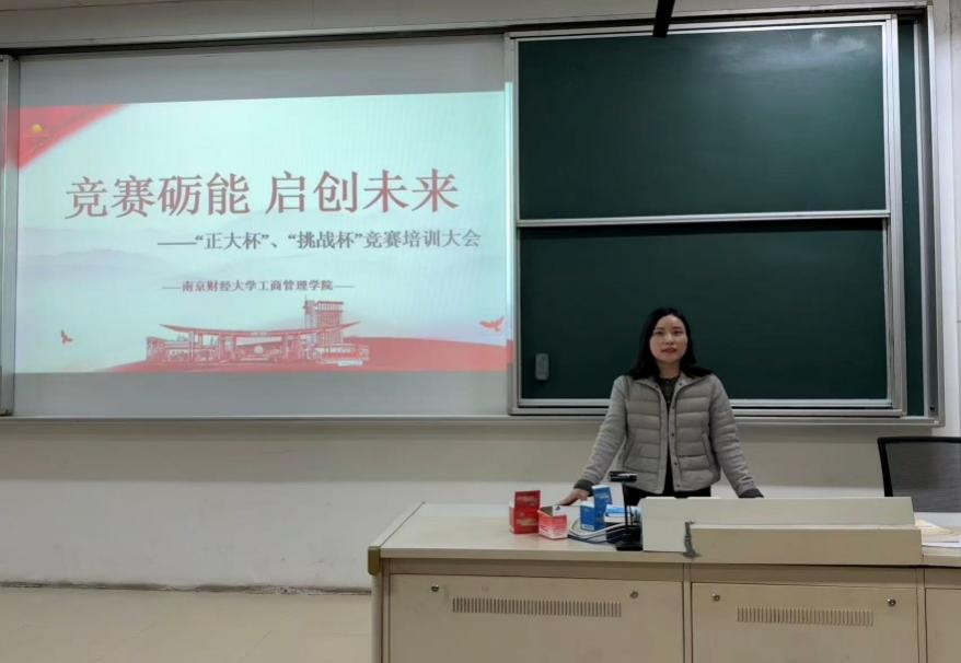 培训伊始,尹海燕老师首先作开场致辞。她指出,学科竞赛是培养学生创新思维与实践能力的重要平台,希望同学们珍惜本次培训机会,系统掌握竞赛方法,积极组建团队,勇于在“正大杯”“挑战杯”等高水平赛事中锻炼自我、展现风采,为个人成长与学院发展注入青春动能。随后,柳杰民副教授系统讲解了“正大杯”赛事规则,他强调选题应遵循“熟悉、有基础、有资源、具热点”原则,做到“小题大做”,并建议跨专业组建3–5人团队、积极寻求教师指导。接着,赵雪老师聚焦“挑战杯”创业大赛,指出赛事重在考察项目落地性与商业价值,她强调选题需切入点小、逻辑闭环,团队要整合资源完善计划书,打造精美PPT,同时强调专利、论文等“硬实力”的重要性。最后,获奖学生代表钟颖同学结合自身经历,鼓励低年级同学积极参与,分享了竞赛在能力提升与人脉积累方面的显著价值。