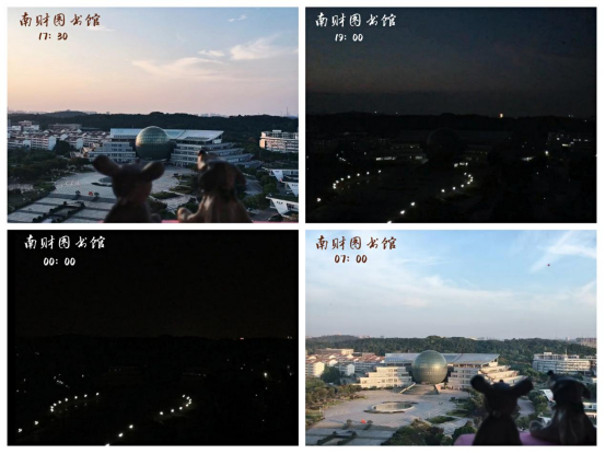 从日暮到清晨的南财大图书馆