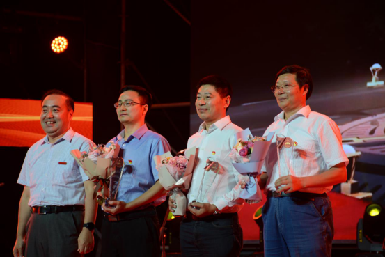 校领导班子成员为获得最佳组织奖的学院颁奖(右二:杨林院长代表磁力链