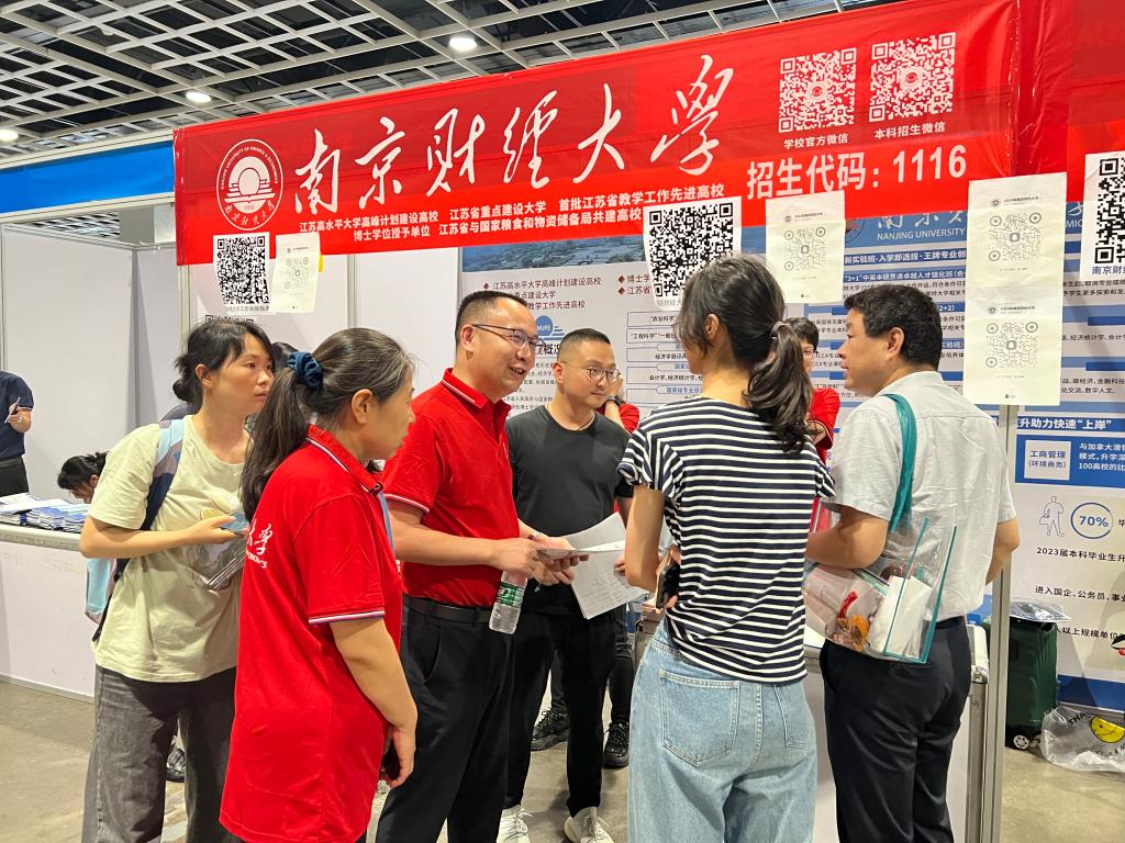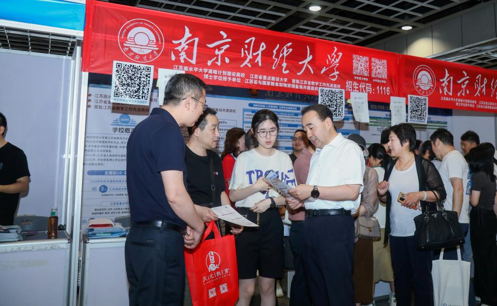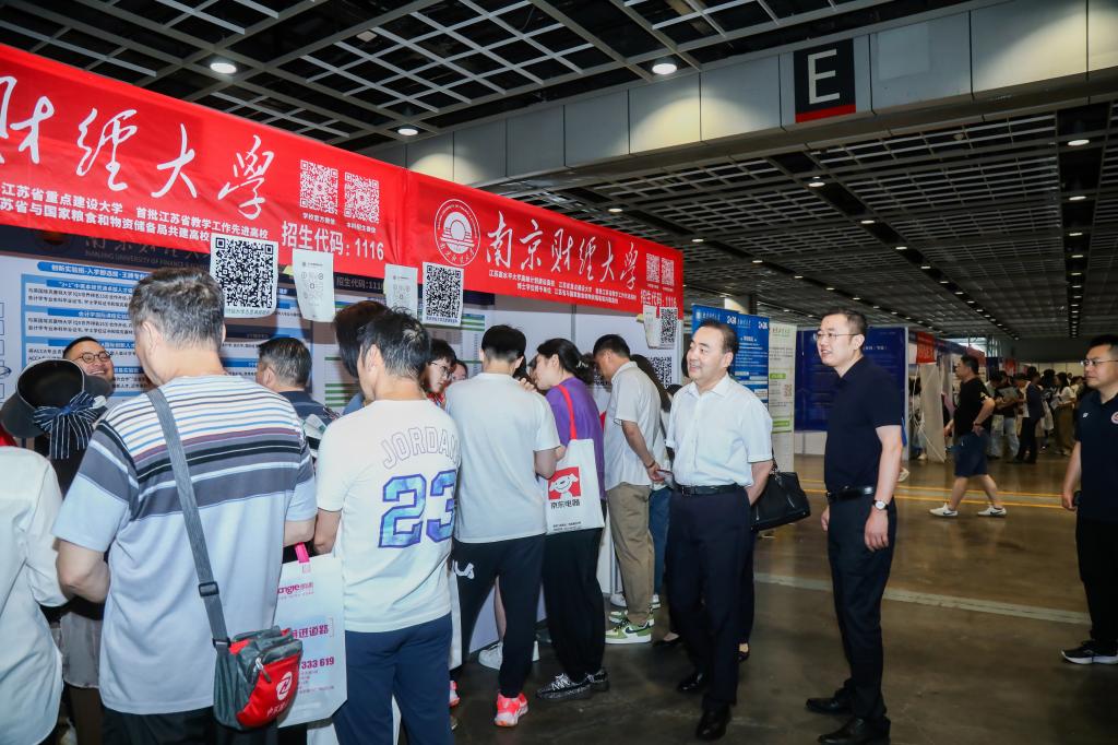 6月26日上午,校长程永波,校党委副书记李群,党委常委、副校长赵国栋、叶林祥一行赴南京国际展览中心开展本科招生宣传并看望招生宣传工作人员。党政办主任郑锷,学生处处长韩力争,磁力链