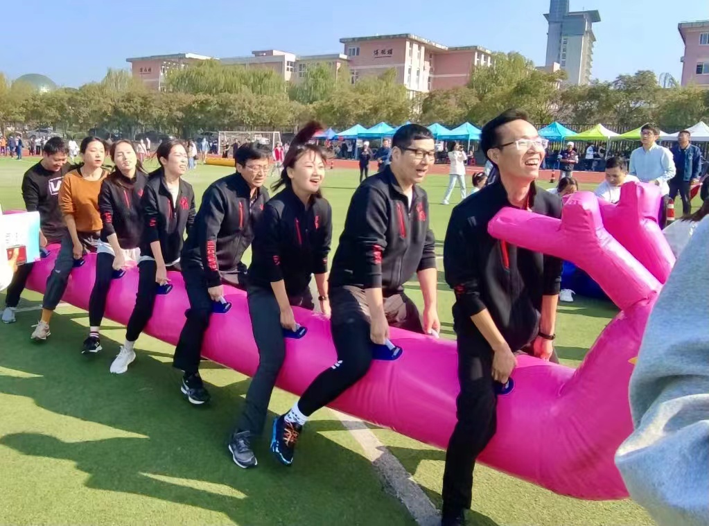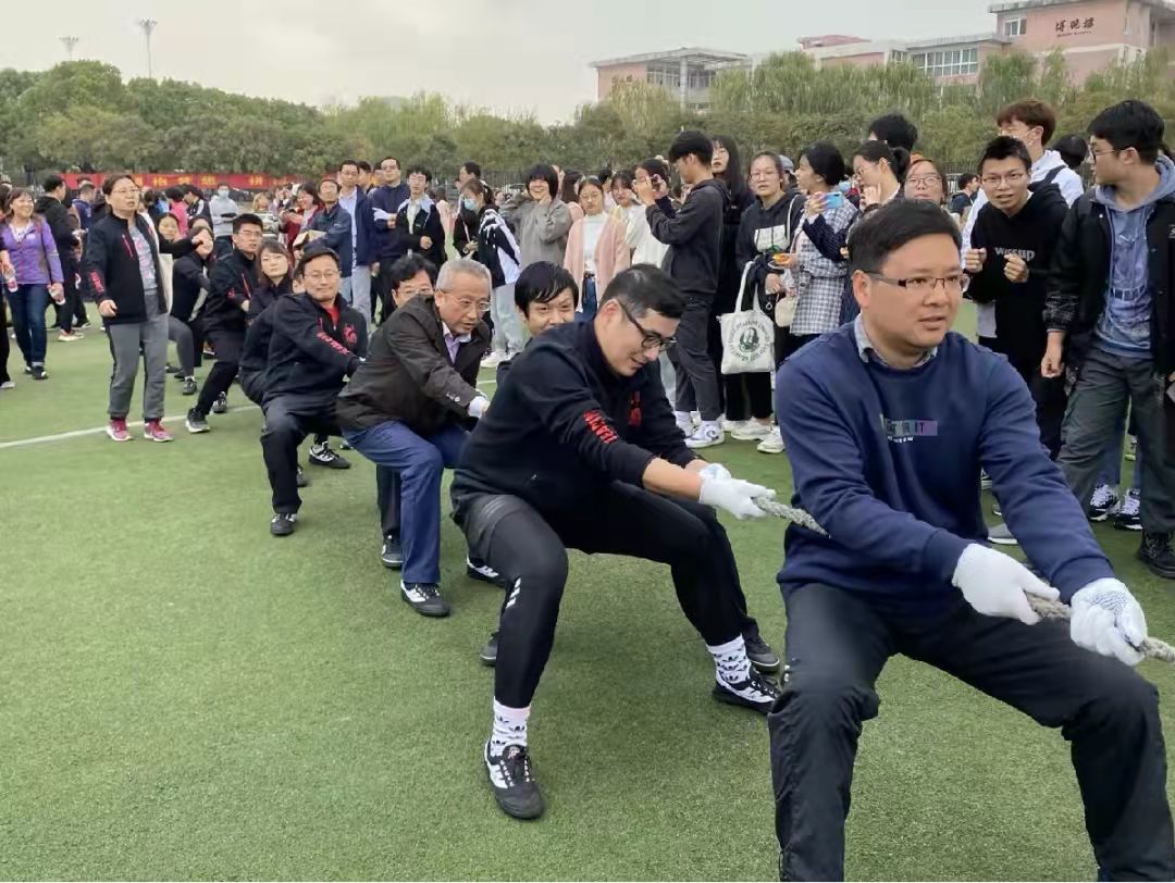 运动会上,工商院的教师们运动健儿们拼搏进取,奋勇争先。在个人项目中,教工组男子定点投篮奚国泉老师获第一名,男子实心球奚国泉老师获第二名,女子实心球冯玲老师获第三名;学生组男子跳高杨洲同学获第二名,顾家骏同学获第五名,女子800米罗乔珍同学获第四名。团体项目中,教工组40s跳绳积少成多获第一名,男女双人三足跑获第三名;学生组绑腿跑、步步为赢获第五名。