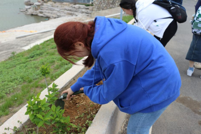 签约授牌仪式后,两院学生代表们在工作人员的带领下参观了桦墅村农家书屋和果园。工作人员为同学们详细讲解了农作物种植知识并手把手指导同学们铲土、除草、播种,同学们以小组为单位将象征着希望和温暖的太阳花种子一一播种。无论是独立完成或是合作种植,在播种的过程中,同学们不怕苦、不怕累,全身心地体会劳动的光荣和快乐,大家将劳动的喜悦与无限期待随着种子一同埋入土中,期盼着在不久的将来孕育出勃勃生机。