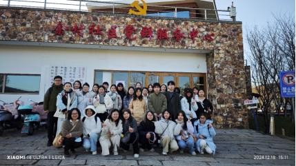 师生在佘村社区党群服务中心前合影
