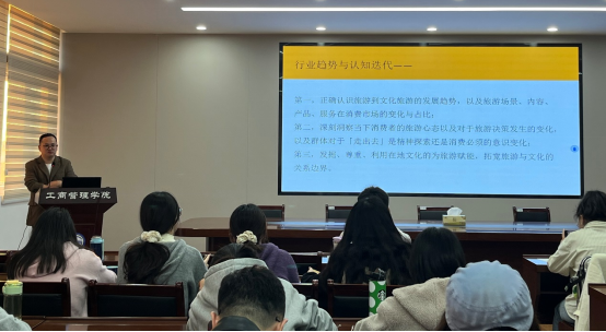 仙林校区德济楼408会议室作了题为“城市更新的战略下,文商旅项目如何实现市场化运营?”的学术讲座。讲座由学院副院长刘泽华主持,张彤老师参加,旅游管理硕士生、部分本科生聆听了讲座。