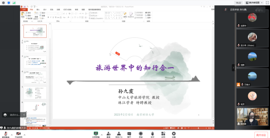 邀请,中山大学旅游学院孙九霞教授通过腾讯会议作了题为“旅游世界中的知行合一”的讲座。讲座由磁力链