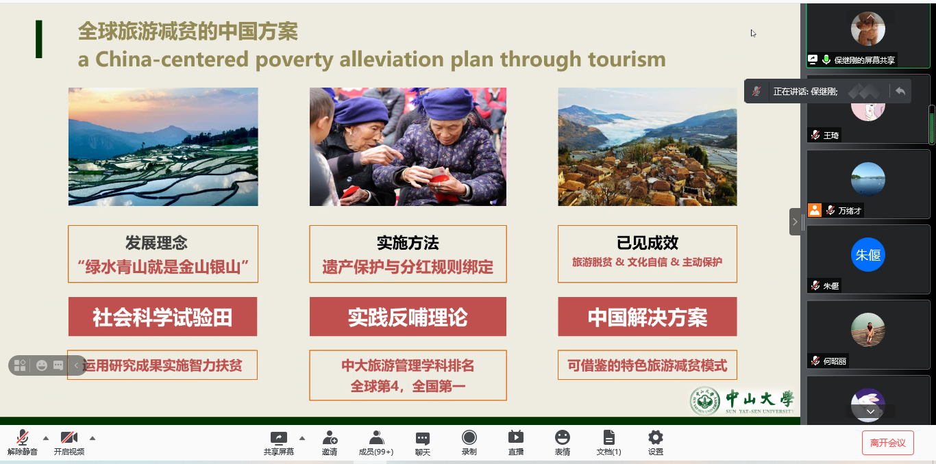 邀请,中山大学旅游发展与规划研究中心主任、博士生导师保继刚教授通过腾讯会议作了题为“阿者科计划与乡村振兴”的报告。报告会由磁力链