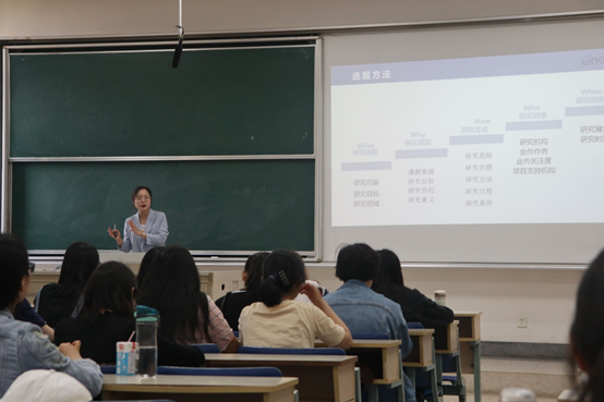 在讲座中,李宁老师主要从四个方面进行阐述,指出阅读量小、缺乏学术论文写作锻炼是论文写作困难的主要原因。论文选题在论文写作中占据了主导地位,李宁老师针对论文选题提出来五点实用的方法与技巧。李宁老师详细地介绍了文献查找、文献研读、论文写作与修改的技巧,同时生动形象地介绍了一些典型的学术不端的案例作为反例。结合到场学生提出的问题,李宁老师与到场学生分享了如何充分利用研学平台进行高效、快速的文献研读与创作,如何利用CNKI研学平台进行选刊与投稿